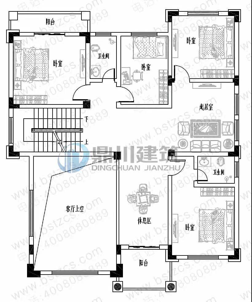 四 層:臥室(附衛(wèi)生間)、臥室、娛樂(lè)間(附露臺(tái))、衛(wèi)生間、露臺(tái)