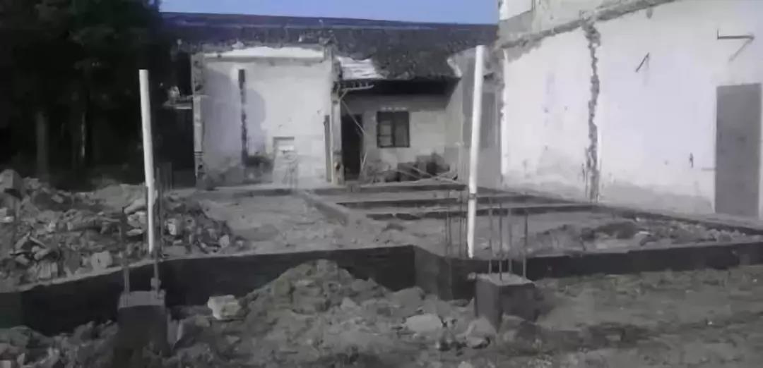▼拆除舊房子,在原有的宅基地上根據(jù)新的圖紙測(cè)量放線,挖地基。