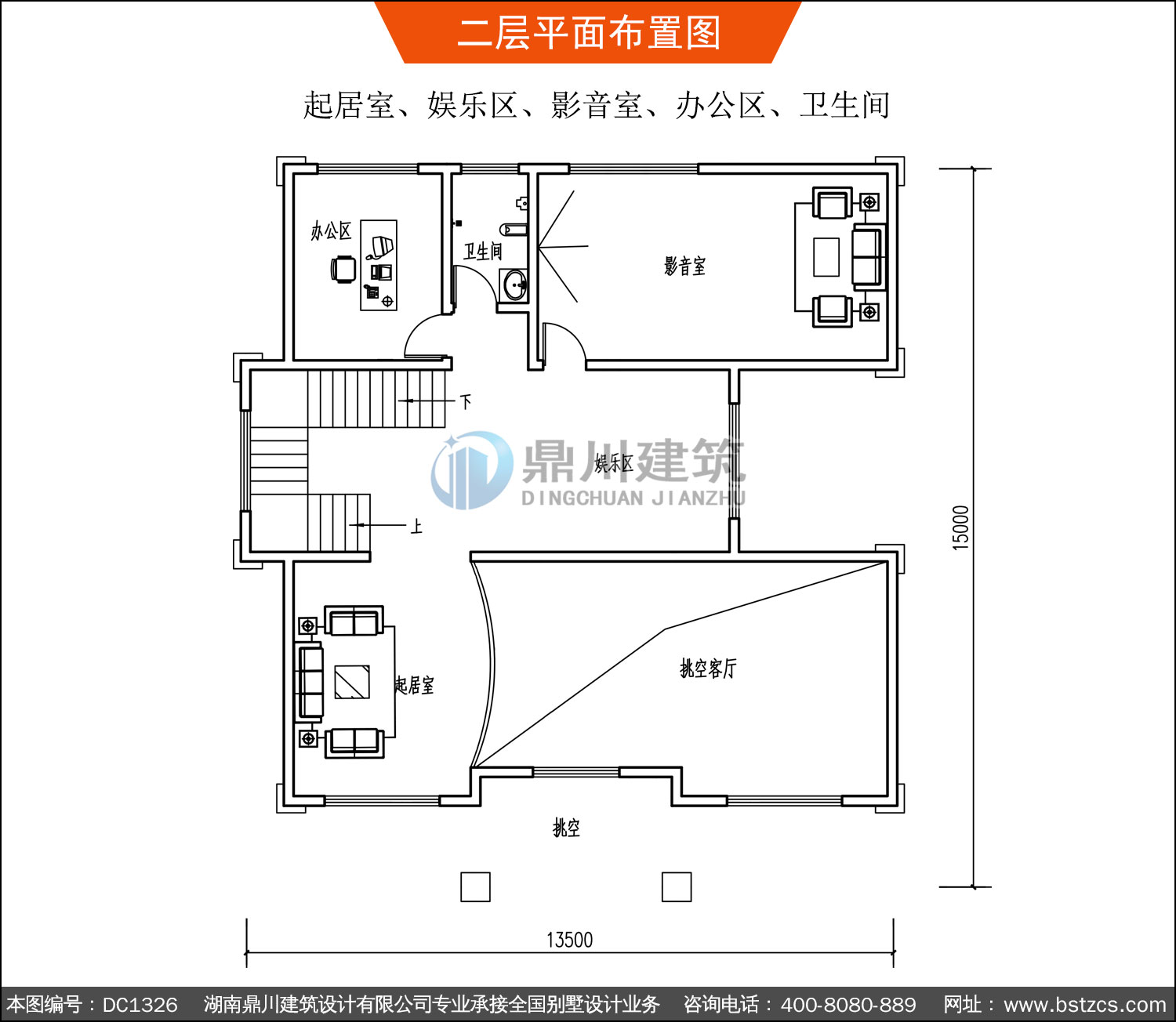 | 二 層: | 起居室、娛樂區、影音室、辦公區、衛生間 | |||