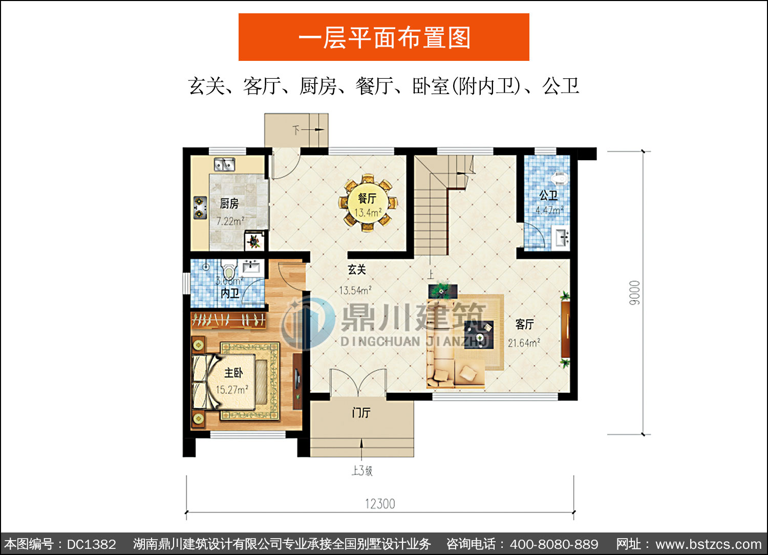 | 一 層: | 玄關、客廳、廚房、餐廳、臥室(附內衛)、公衛 | |||