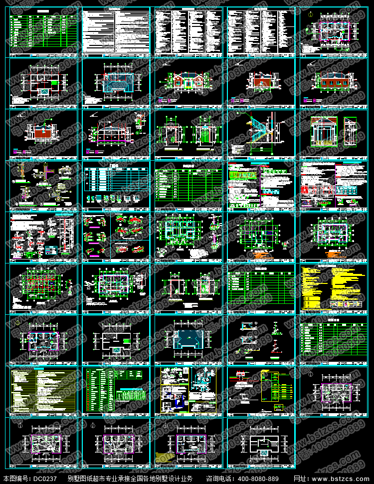 本套圖紙有施工圖44張,效果圖2張,包打印(效果圖為彩圖,施工圖為A3大圖),快遞包郵,無電子版