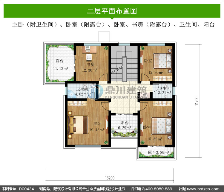 | 二 層: | 主臥(附衛(wèi)生間)、臥室(附露臺(tái))、臥室、書房(附露臺(tái) )、衛(wèi)生間、陽臺(tái) | |||
